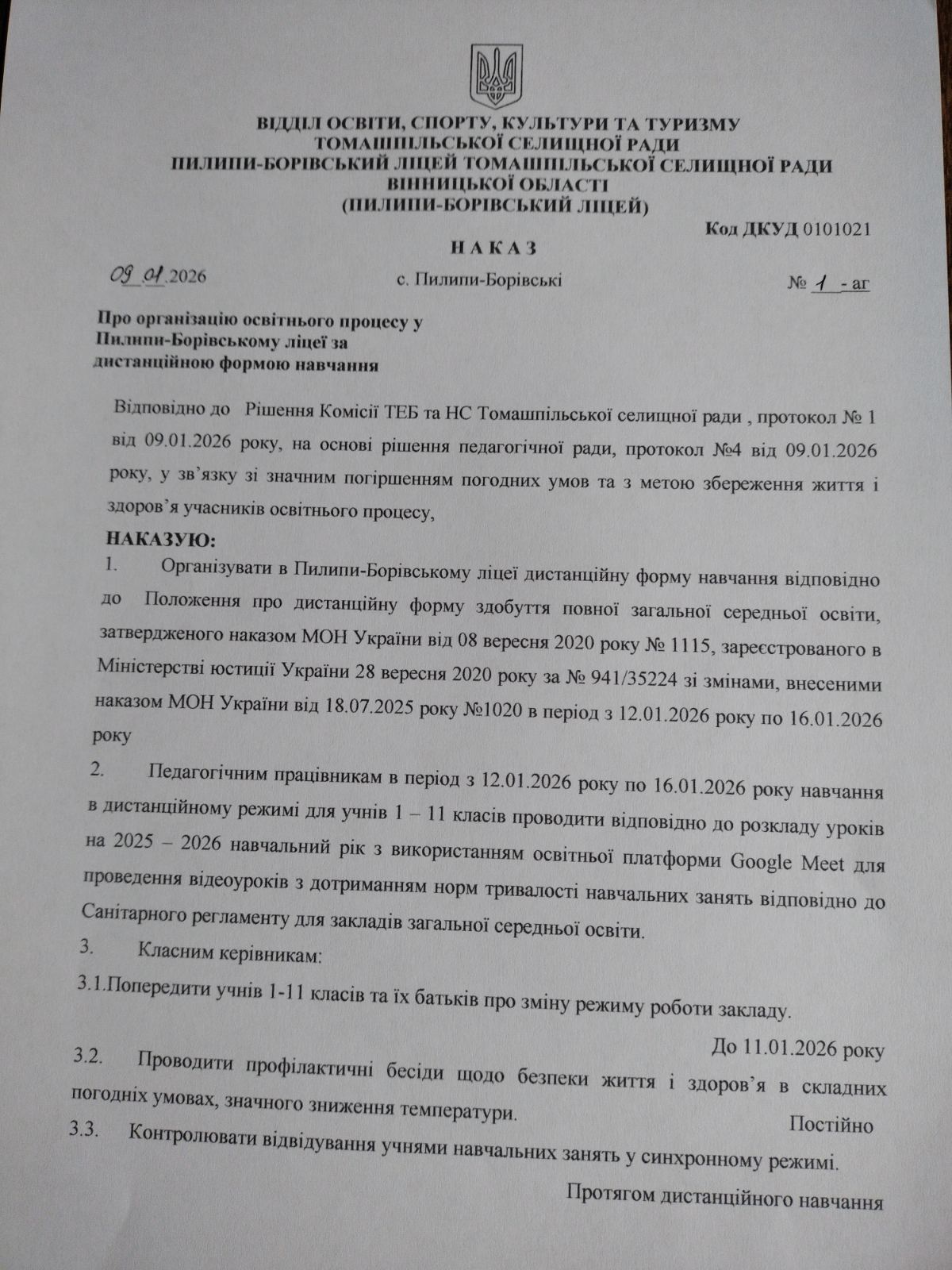 Дистанційне навчання 12.01.2026