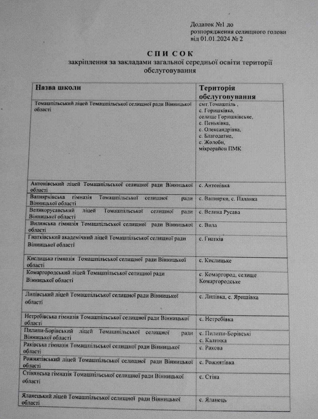 Територія обслуговування, закріплена за закладом освіти його засновником